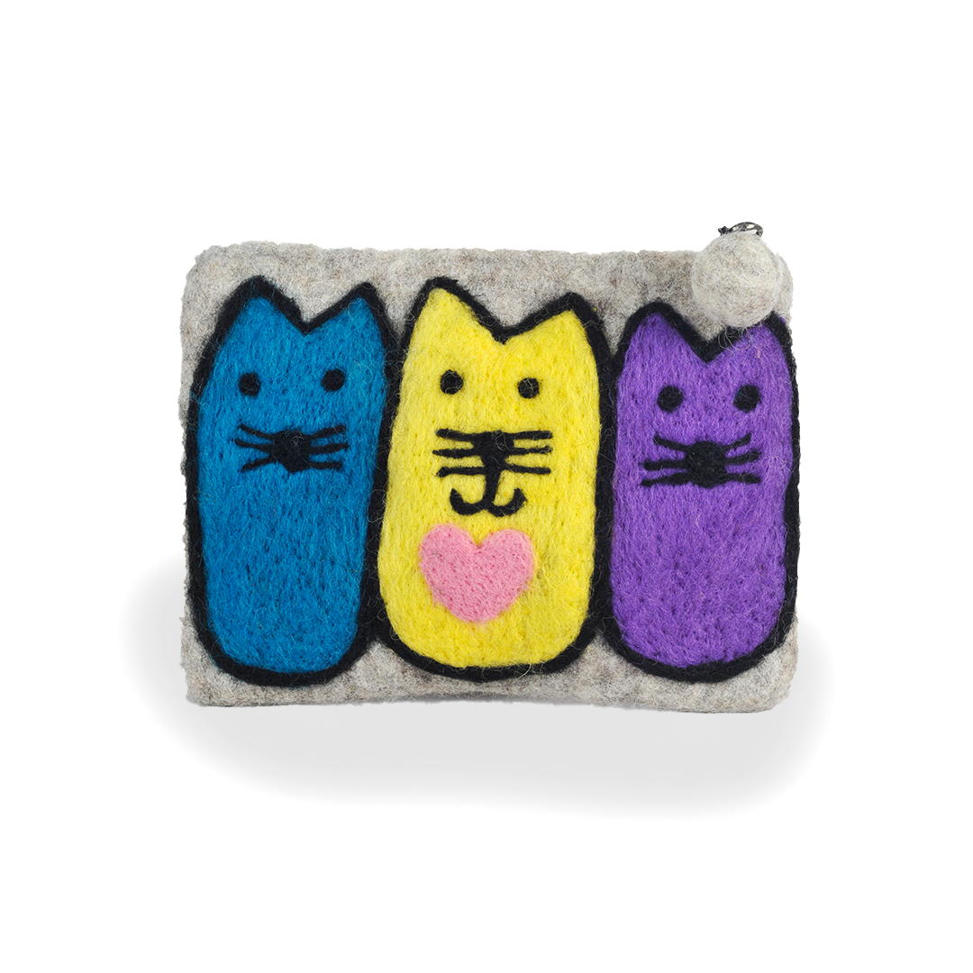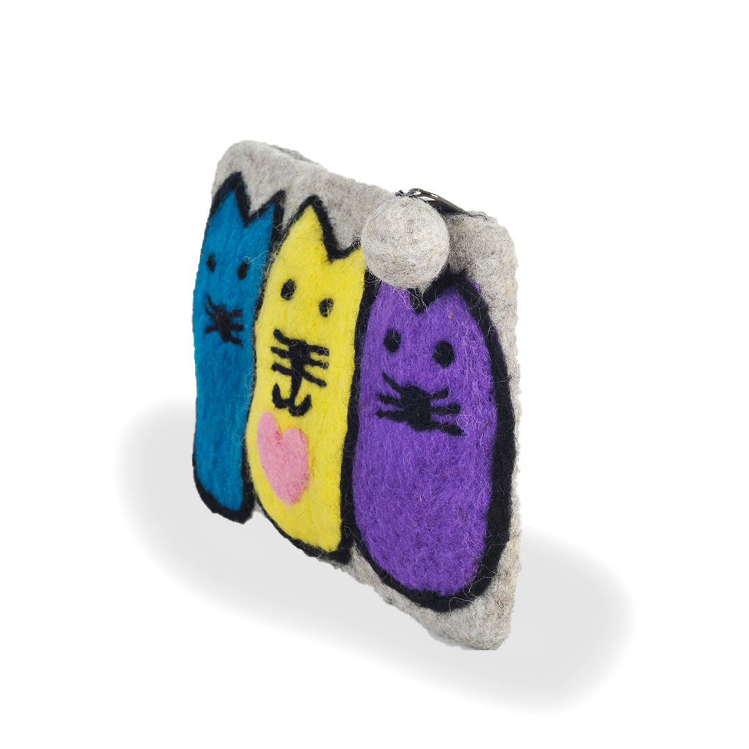 Brighten up your day with our charming Trio of Cats Felt Purse, a delightful accessory that adds a playful touch to your essentials.